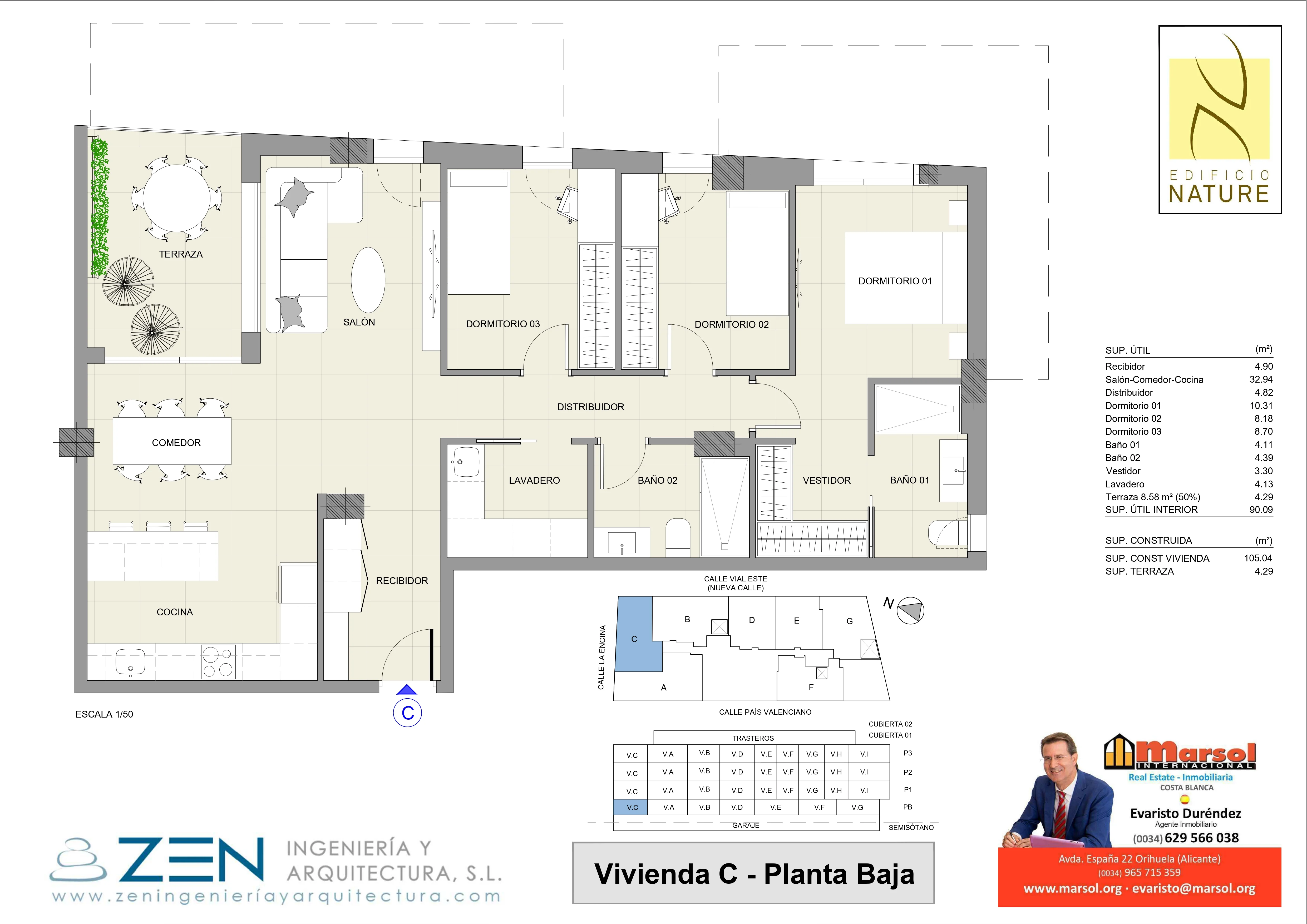Ver Vivienda Ver Plano INFORMACIÓN DETALLADA REFERENCIA OB-N3BC-3 ESTADO Obra Nueva TIPO Planta baja DORMITORIOS 3 BAÑOS 2 ÁREA ÚTIL 90.00 ÁREA TOTAL 105.00 ZONAS Todas POBLACIÓN Orihuela BARRIO Los Andenes ORIENTACIÓN Sureste CALIFICACIÓNENERGÉTICA PRECIO 243.500 €