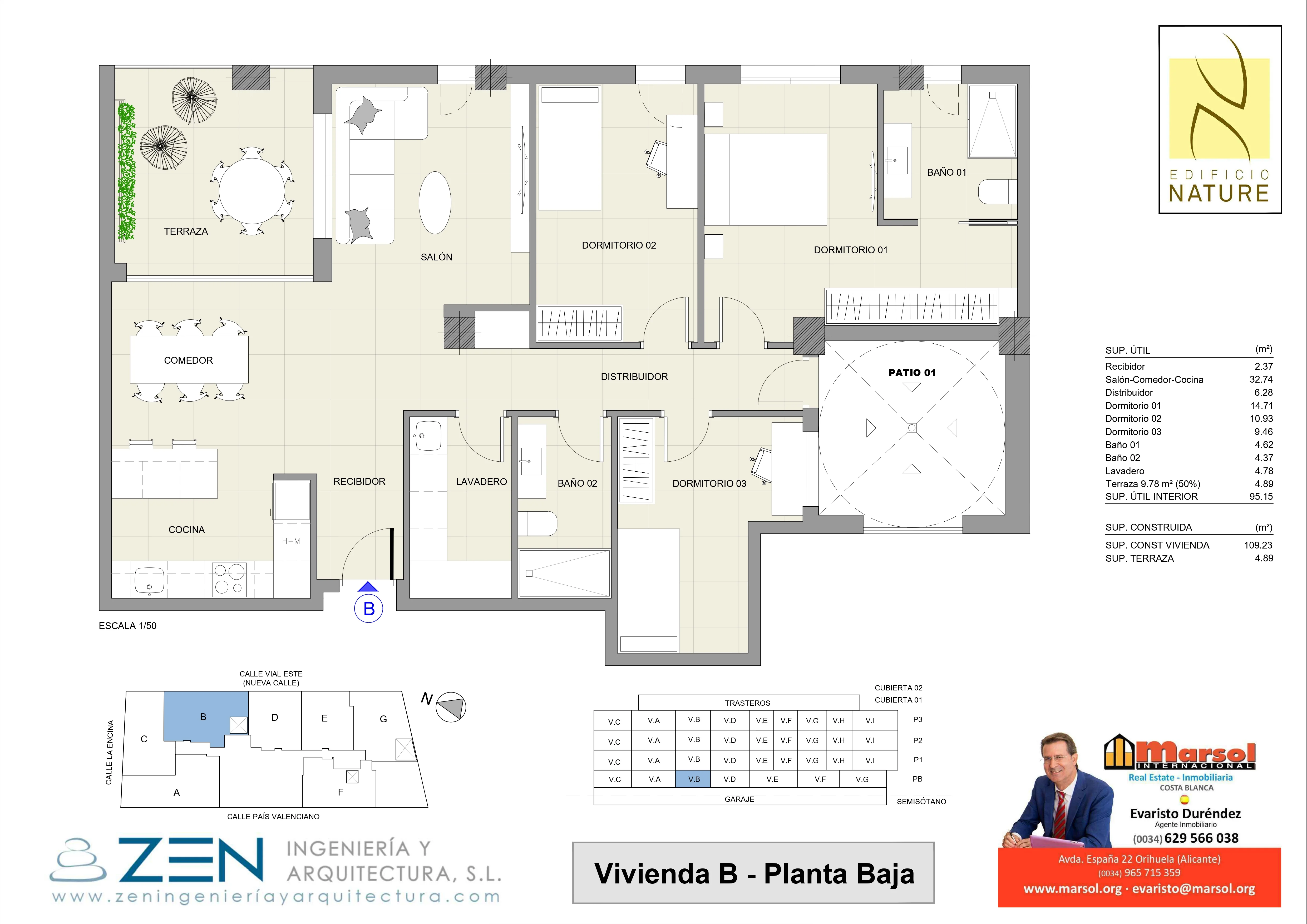 Ver Vivienda Ver Plano INFORMACIÓN DETALLADA REFERENCIA OB-N2BB-3 ESTADO Obra Nueva TIPO Planta baja DORMITORIOS 3 BAÑOS 2 ÁREA ÚTIL 95.00 ÁREA TOTAL 109.00 ZONAS Todas POBLACIÓN Orihuela BARRIO Los Andenes ORIENTACIÓN Sureste CALIFICACIÓNENERGÉTICA PRECIO 238.000 €